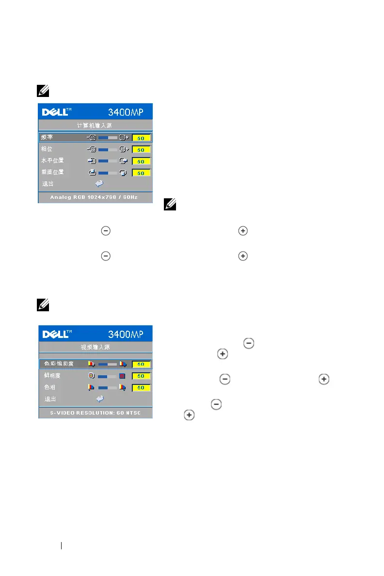 Dell 3400MP - 计算机输入源菜单; 视频输入源菜单