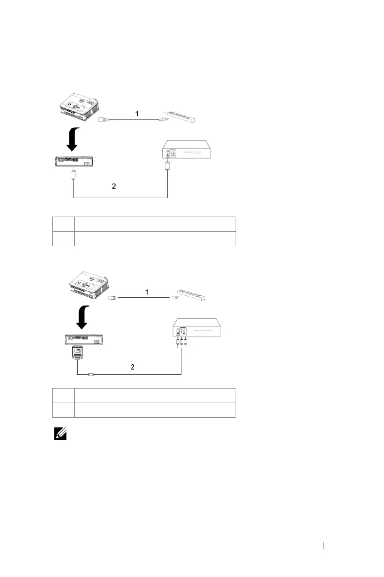 Dell 3400MP - 복합 케이블을 사용하여 DVD 플레이어 연결하기; 컴포넌트 케이블을 사용하여 DVD 플레이어 연결하기