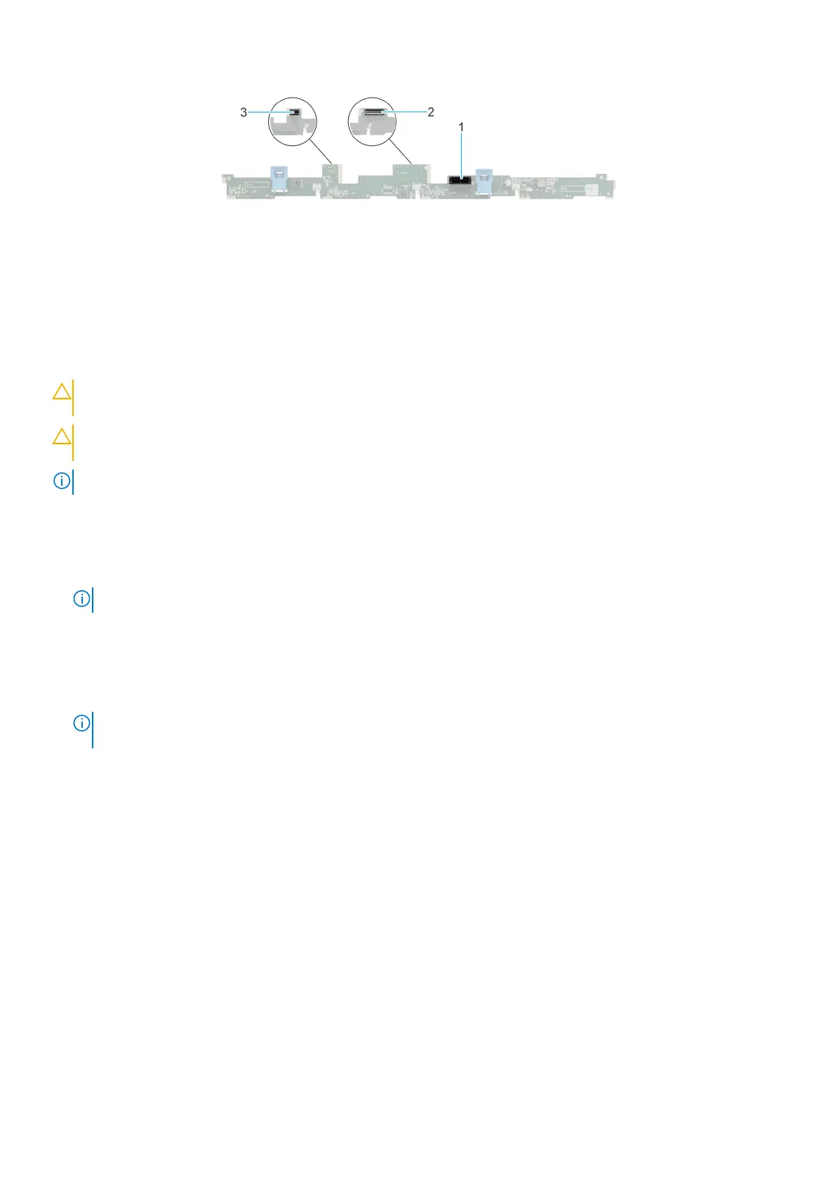 6. Disconnect the drive backplane cables from the connectors on the system board.