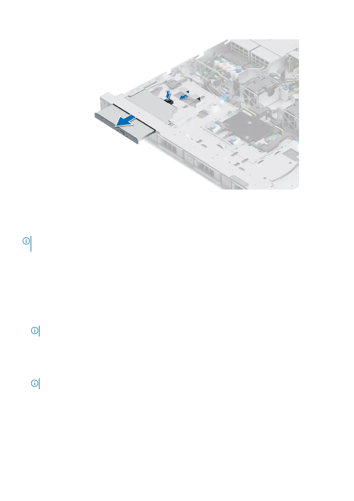 3. If installed, remove the optical drive blank by releasing the latch at right or left side and pull the blank out of the system.