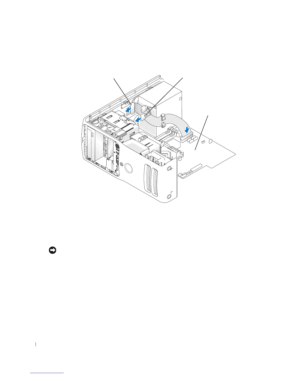 Connect the power cable to the drive and the CD/DVD cable to the drive and system board.