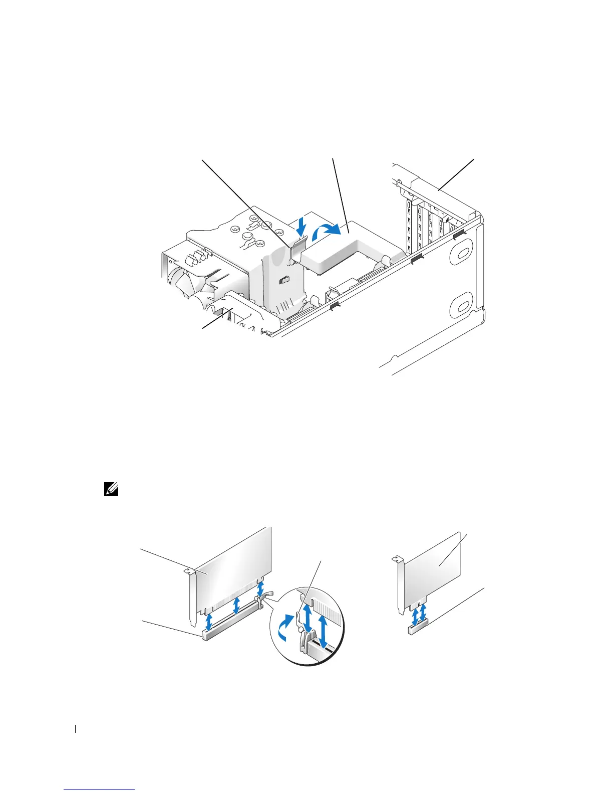 NOTE: For full-length PCI-E cards, if a "piano" bracket is present on your computer you need to rotate it