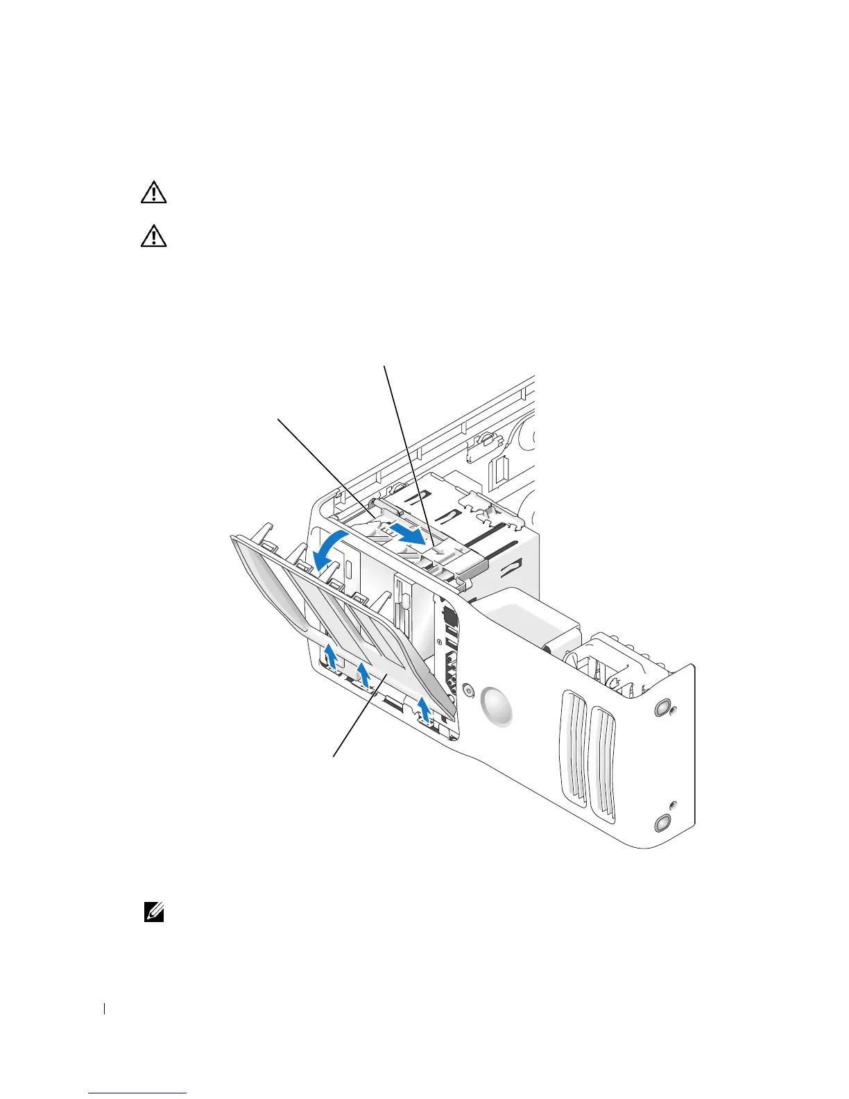 NOTE: The sliding plate secures and releases the drive panel and helps to secure the drives.