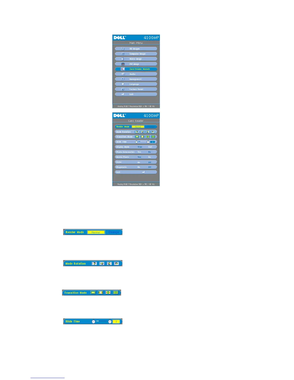 Use Render Mode function to change Normal, Pre-view or Slide Show mode, select Change to go into the sub-menu.