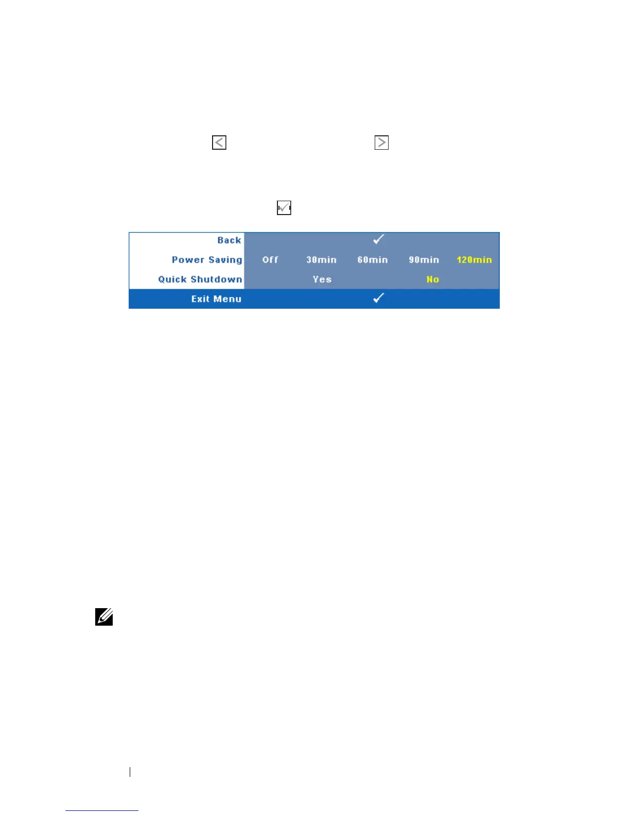 UICK SHUTDOWN—Select Yes to turn off the projector with a single press of