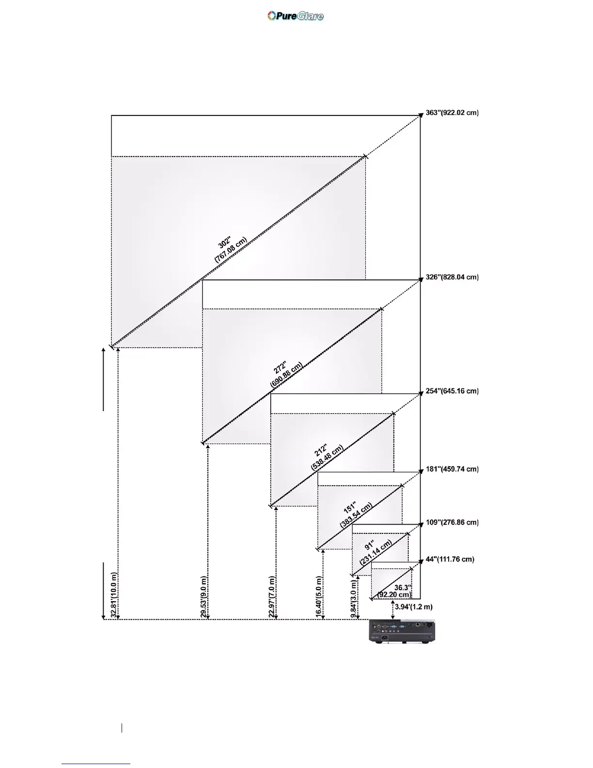 Projector to screen distance