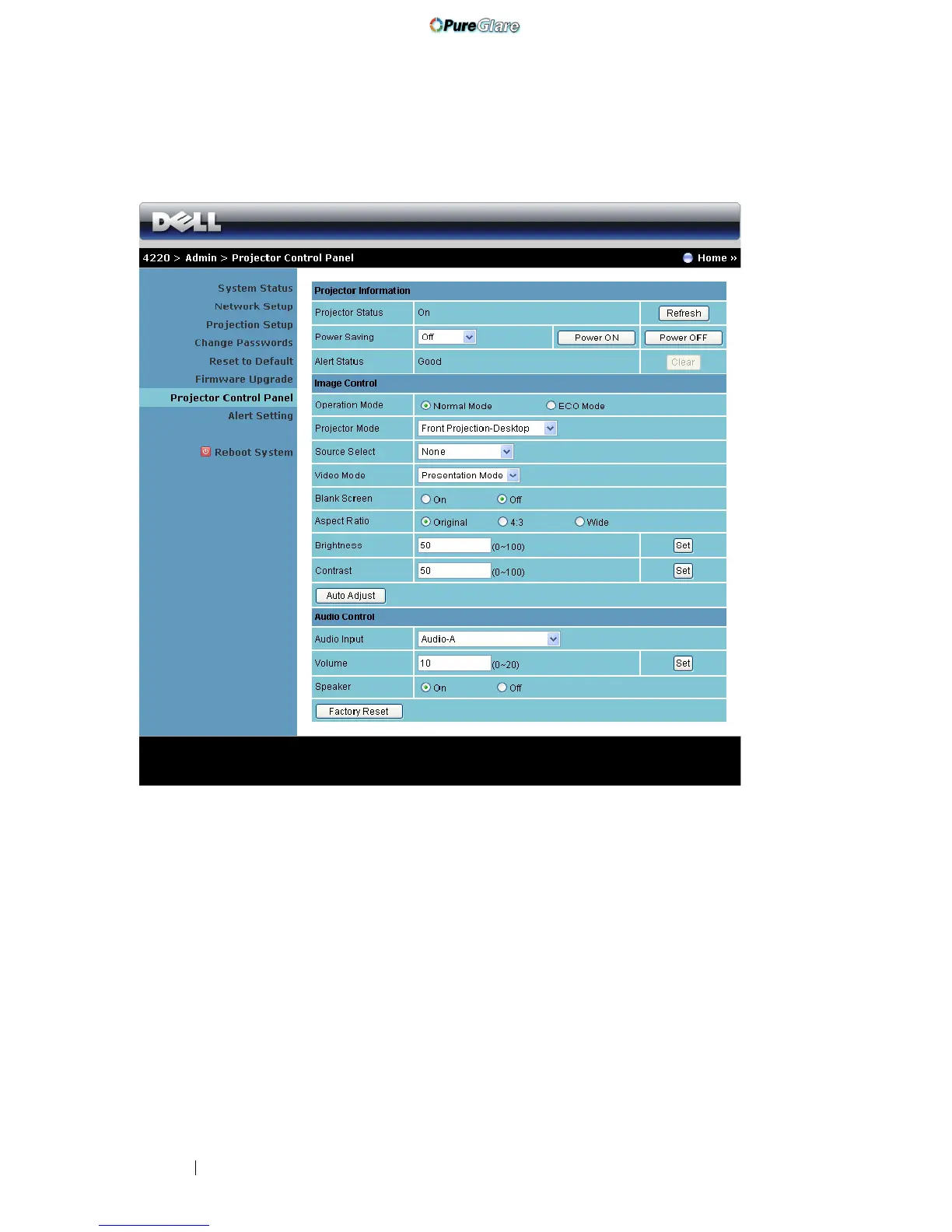 • Alert Status: There are three alert states: Lamp warning, Low lamp life, and