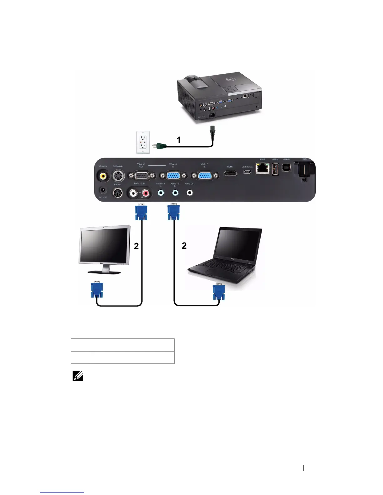 NOTE: Only one VGA cable is shipped with your projector. An additional VGA