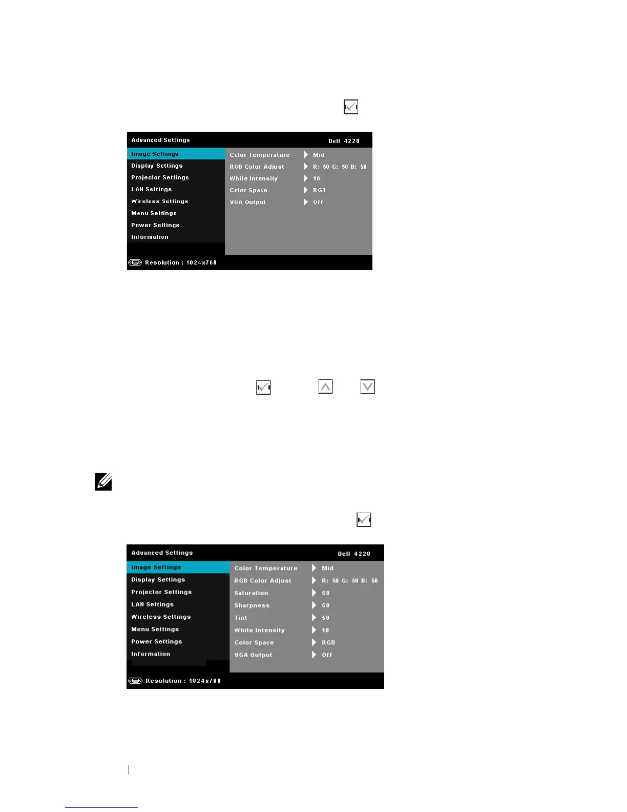 NOTE: If you adjust the settings for Color Temperature, RGB Color Adjust, and
