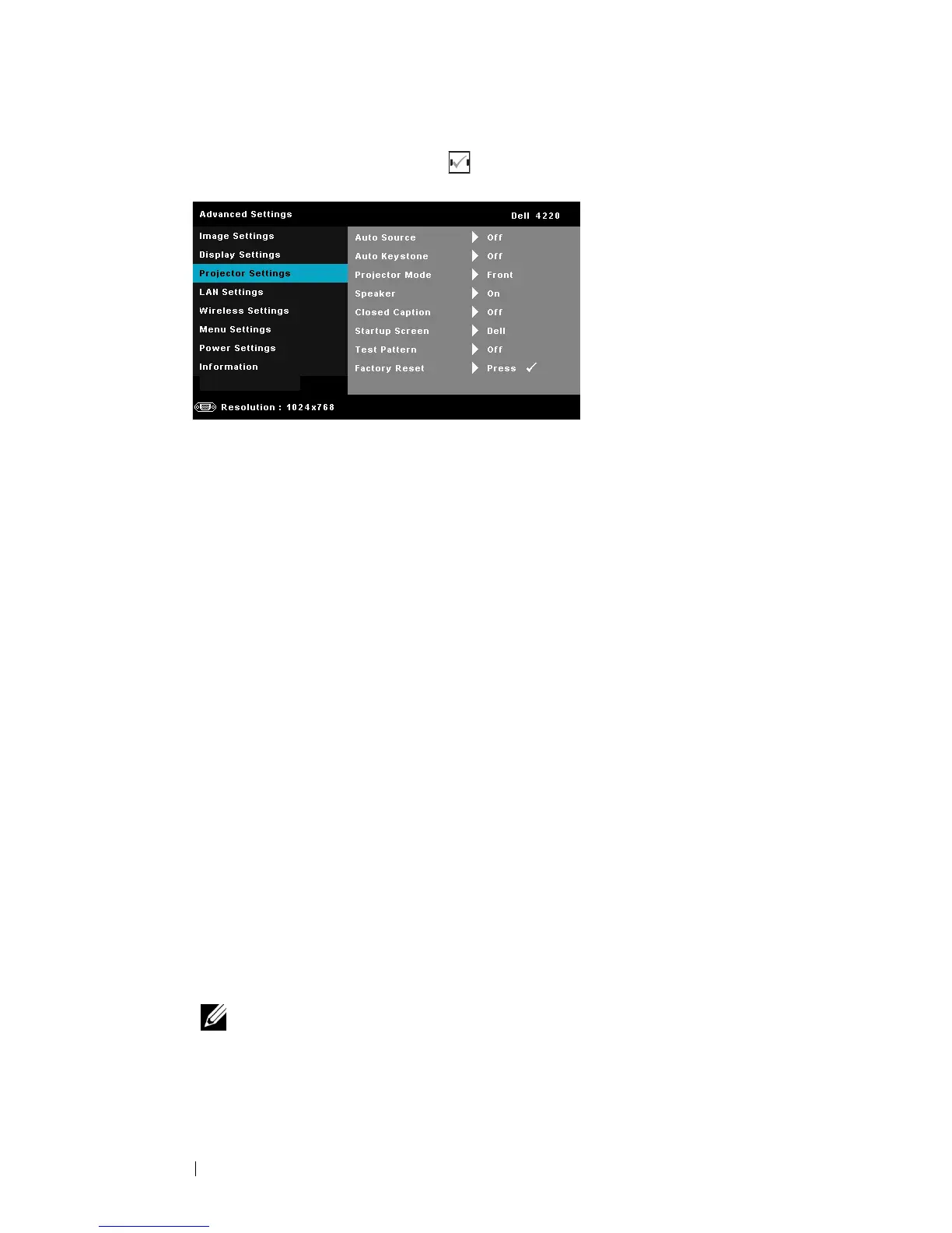 PROJECTOR SETTINGS—Select and press to activate projector settings. The