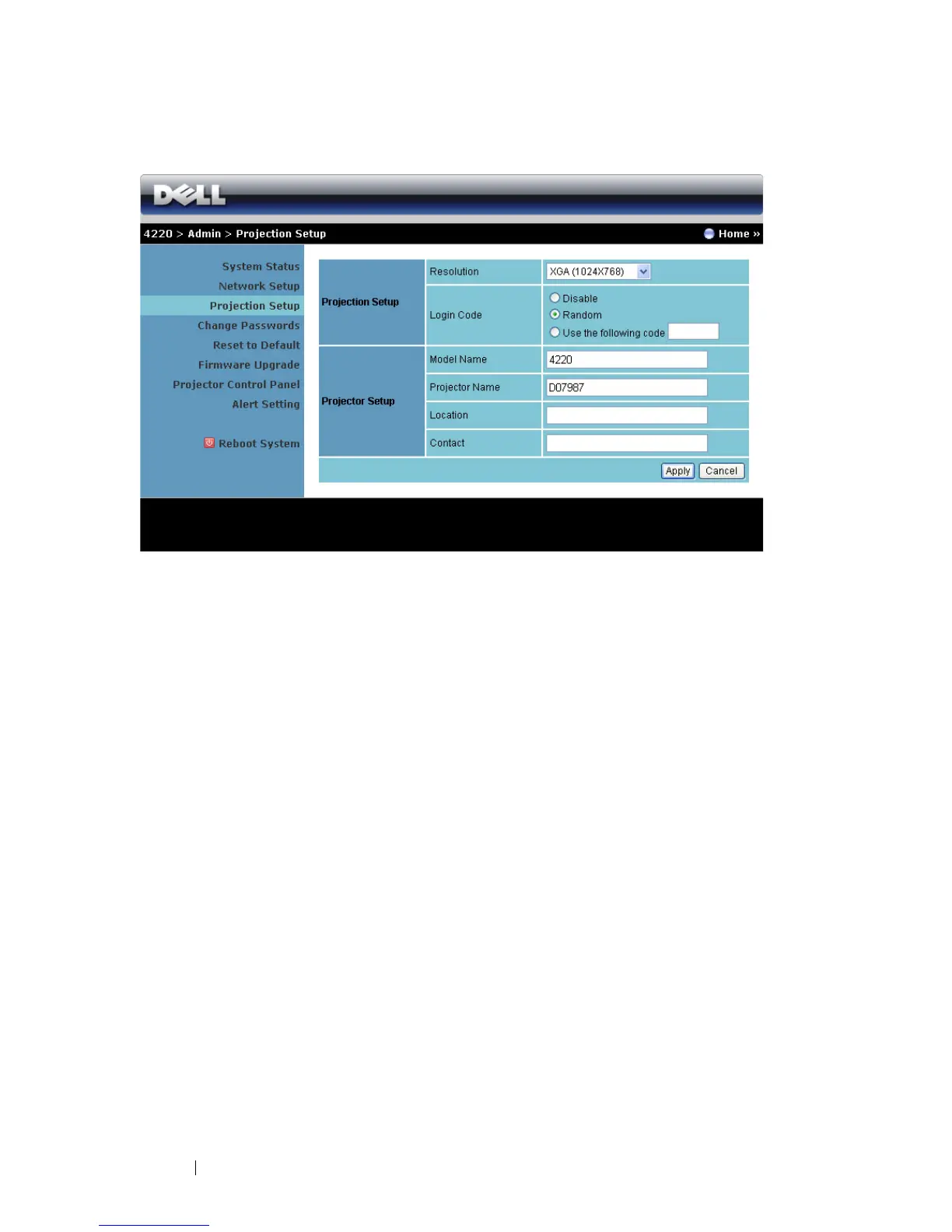 • Resolution: Allows you to select the resolution. Options are: XGA (1024 x