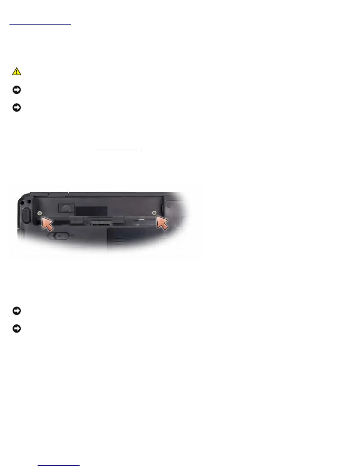 NOTICE: To help prevent damage to the system board, you must remove the battery from the battery bay before you