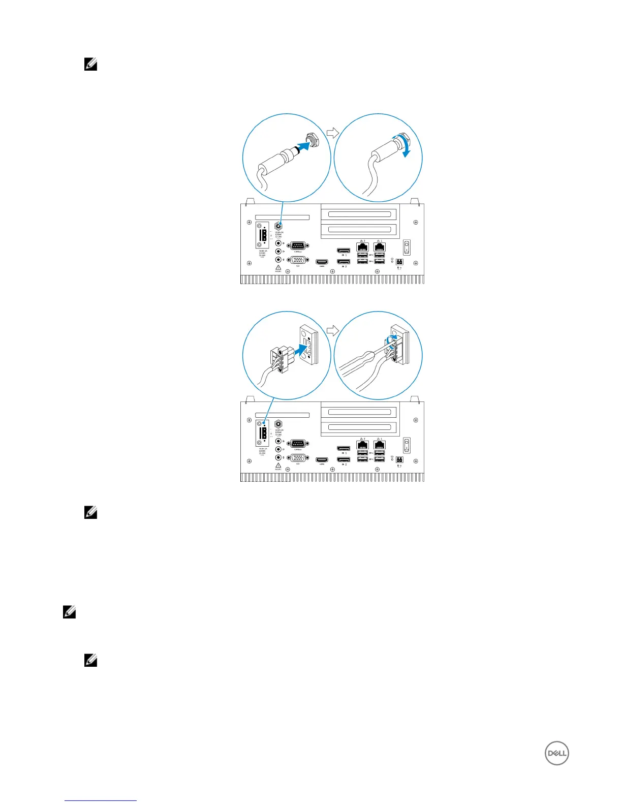 • Connect the power adapter and tighten the sleeves on the adapter pin to secure it to the Embedded Box PC.