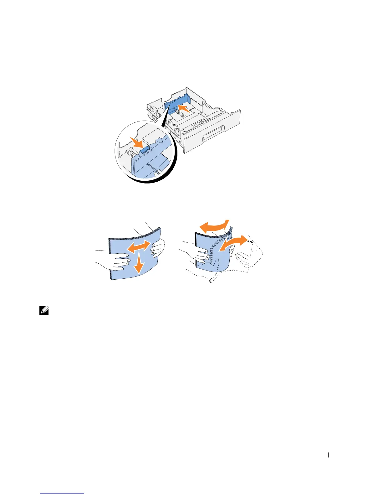 Before loading the print media, flex the sheets back and forth, and then fan them. Straighten