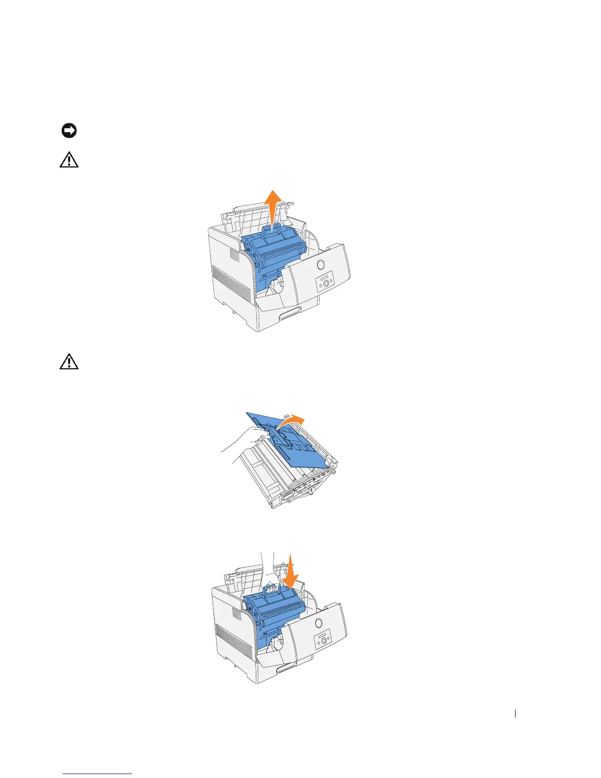 NOTICE: Please put the removed imaging drum on a flat even desk without things, such as a pencil and