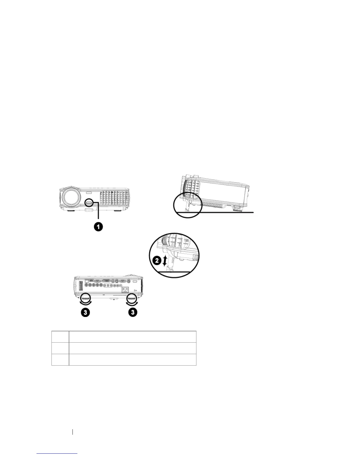 Dell 5100MP - 投影されたイメージの調整; プロジェクタの高さを上げる; プロジェクタの高さを下げる