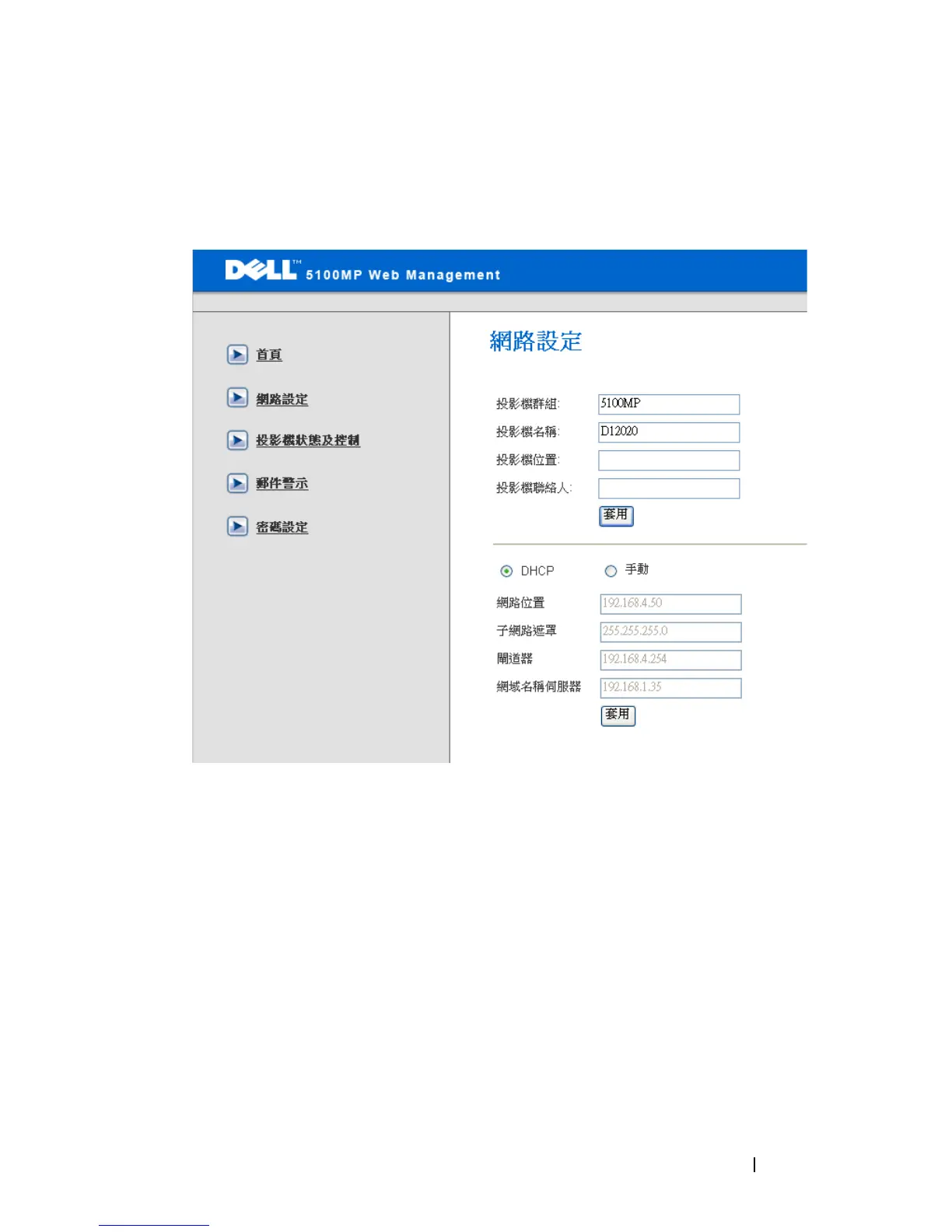 伺服器自動取得投影機