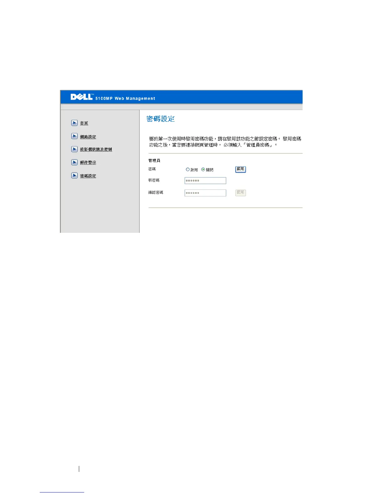 碼時,請在啟用前先設定密碼;啟用密碼功能時,您需要管理員密碼來
