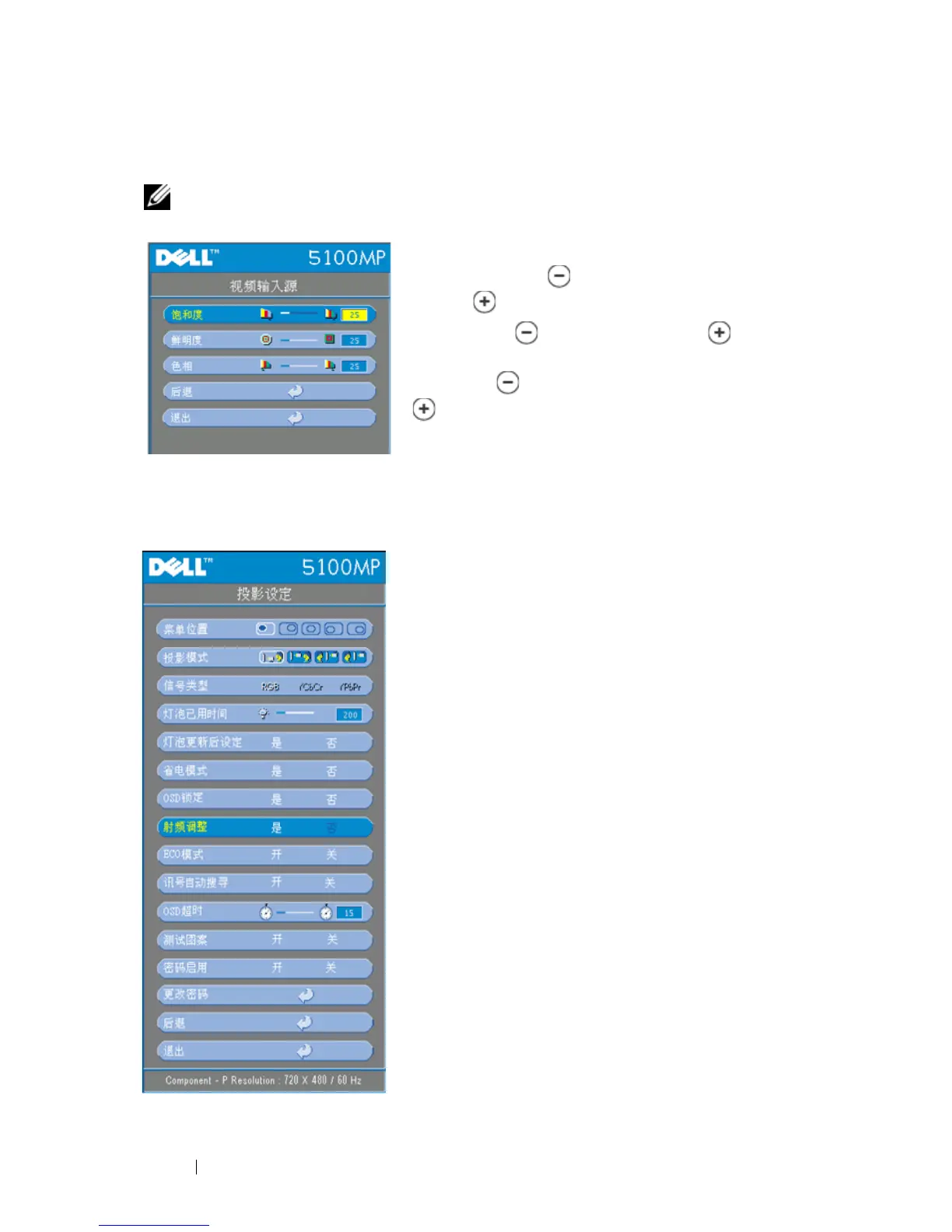 Dell 5100MP - 视频输入源菜单; 射频调整连接