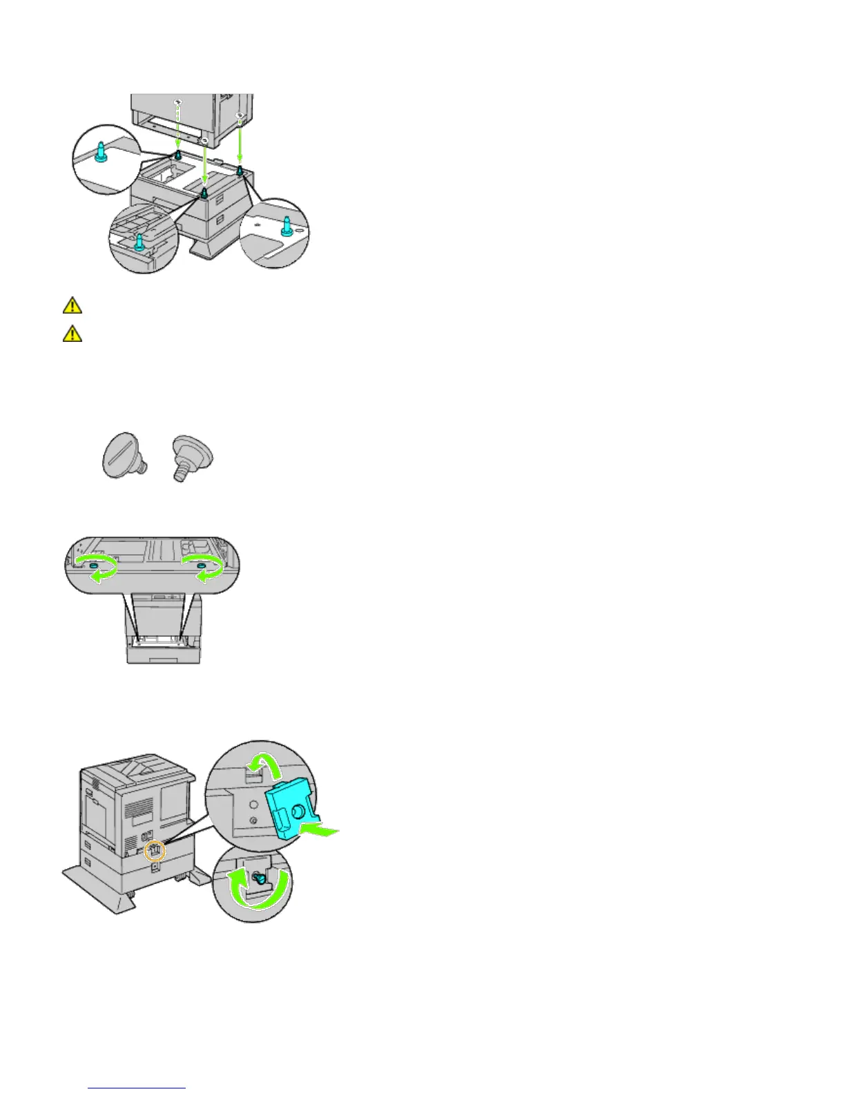 6. Secure the printer and the 1100-sheet feeder with a plastic clamp-lock and the long screw provided with the
