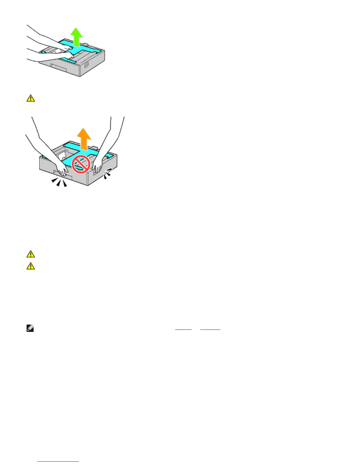 CAUTION: When carrying the 550-sheet feeder, do not grasp the areas shown in the following