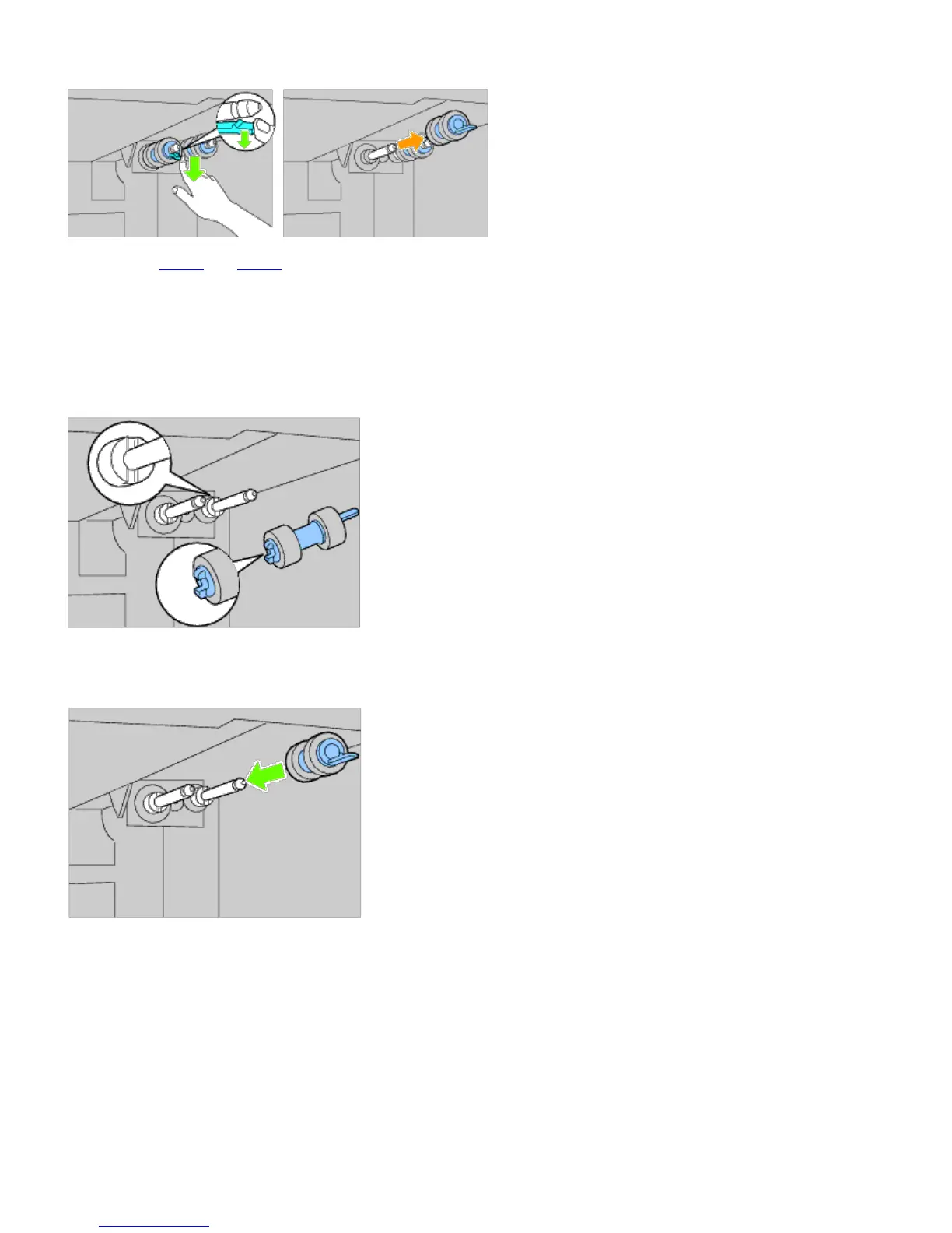 2. Slide the separator roller along the axle so the protrusions fit completely into the slots and the roller hook reseats