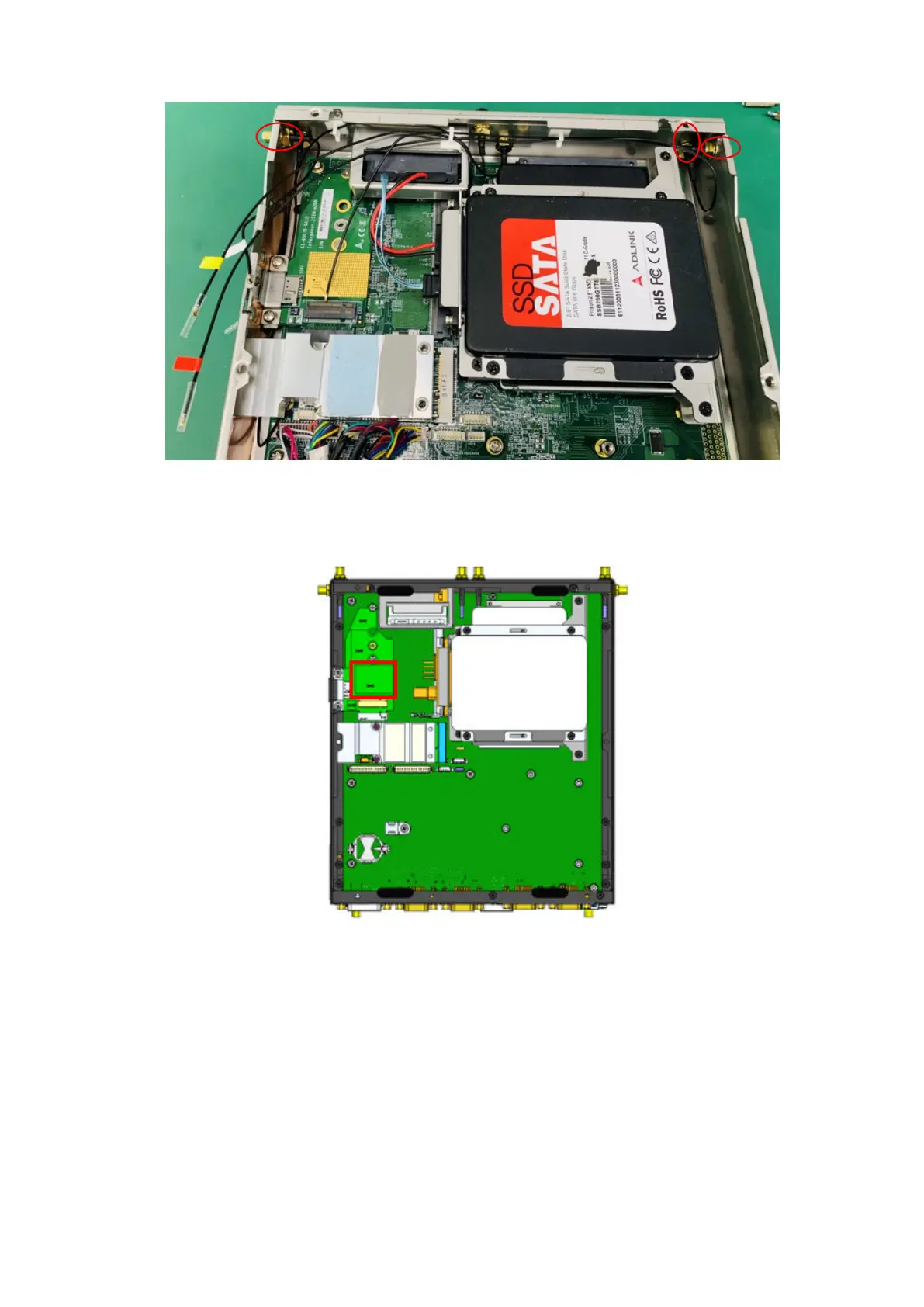 7. Note the installation location for the M.2 module, as indicated with a red rectangle in the following figure.