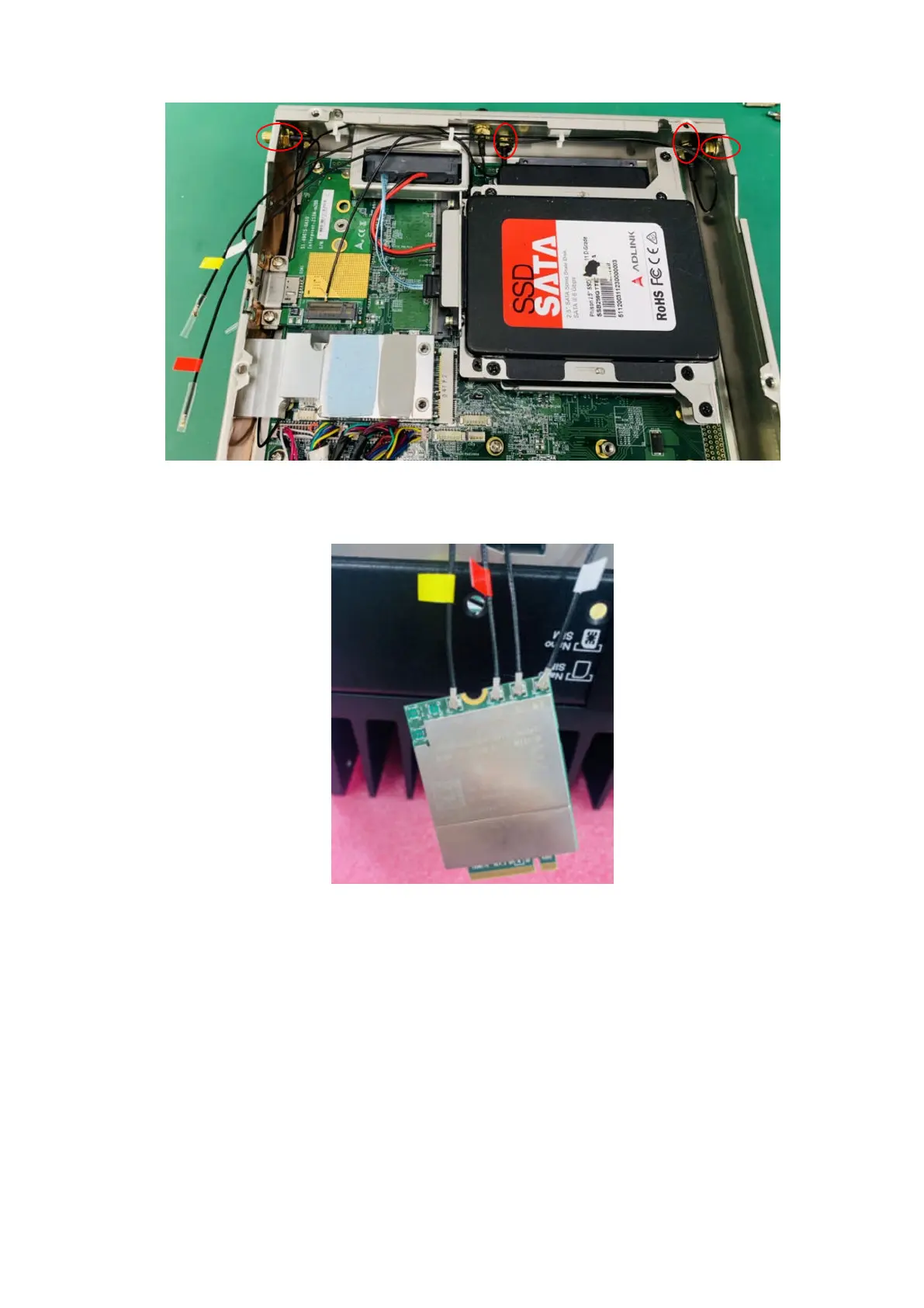 6. Wire the SMA cables to the M.2 module, as shown in the following figure. Use cable clips to secure the cables.