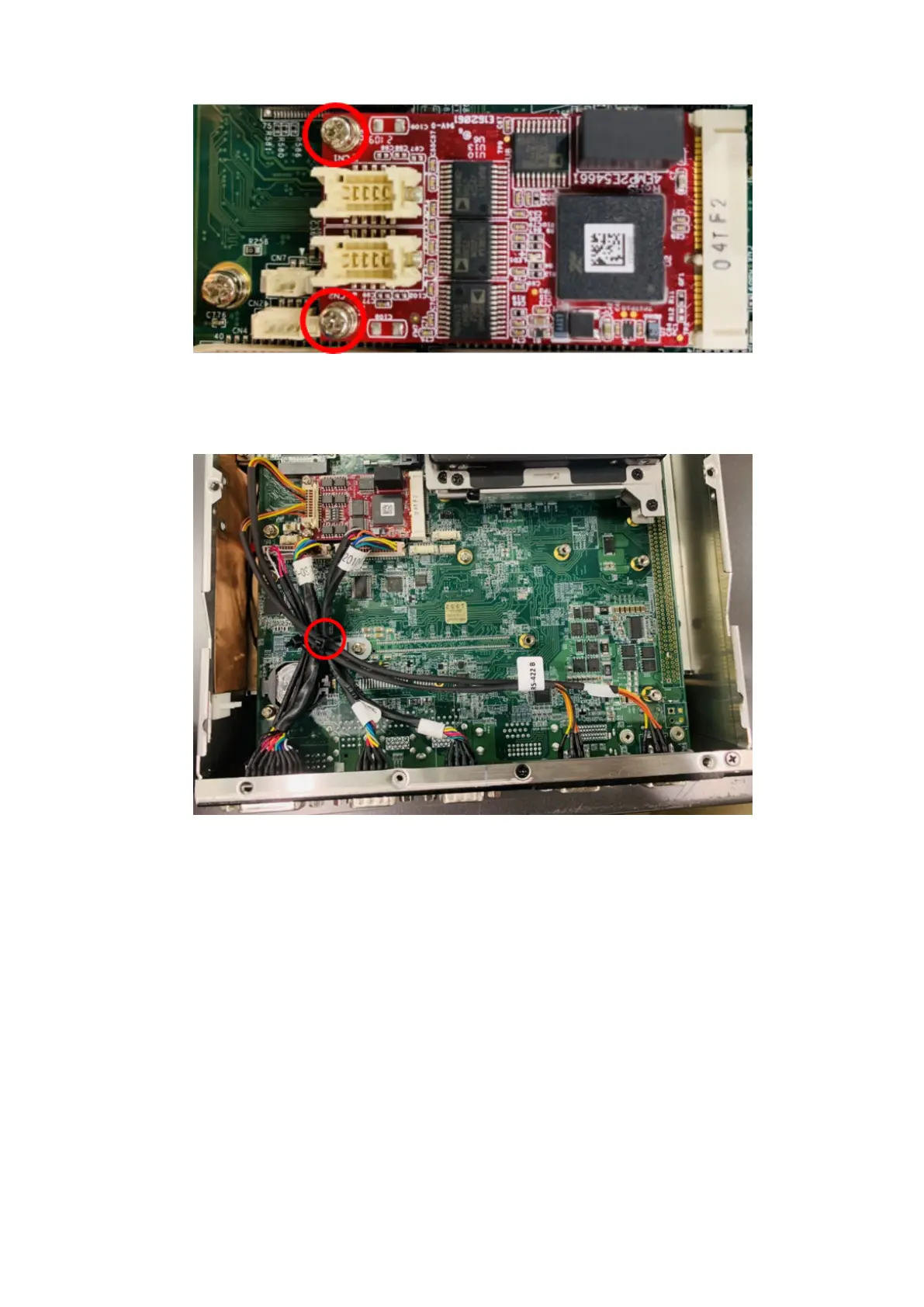 12. Connect the cables from the Isolated COM ports to the Isolated COM mPCIe module. Use a cable tie, as shown with a red