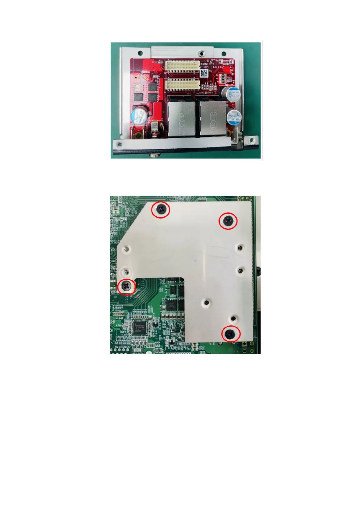 12. Use two M3 x 6L screws to secure the uFM module to the bracket, and secure the GbE with PoE I/O panel to the front I/O
