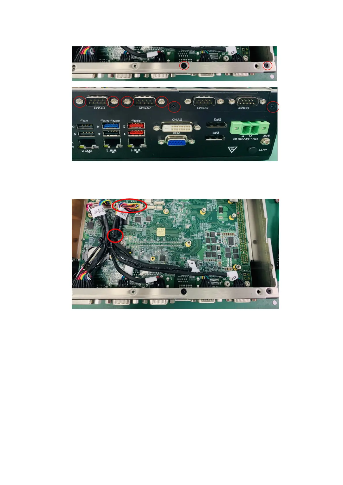 3. Disconnect the four-port COM cable from the motherboard header and from the front I/O panel, and cut the cable tie, as