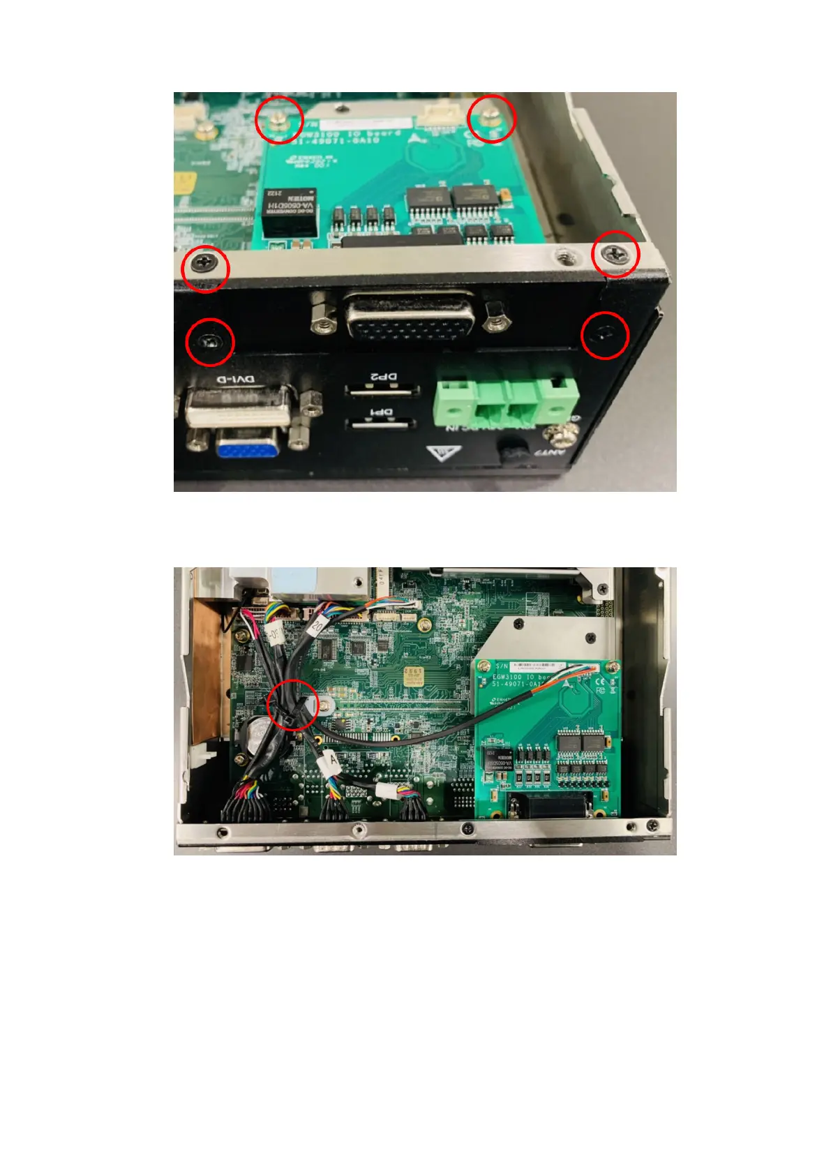 9. Connect the DI/O cable. Use a cable tie, as shown with a red circle in the following figure.