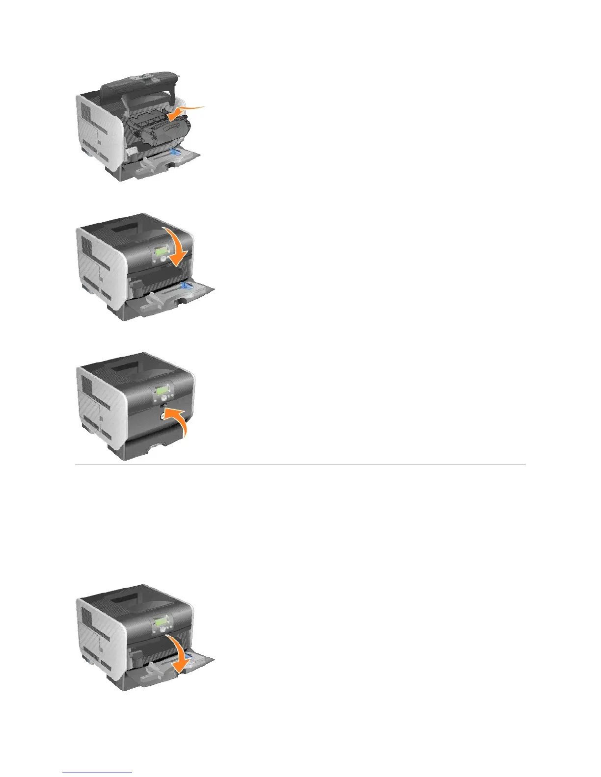 2. Pull on the notch on the front of the printer to lower the multipurpose feeder.