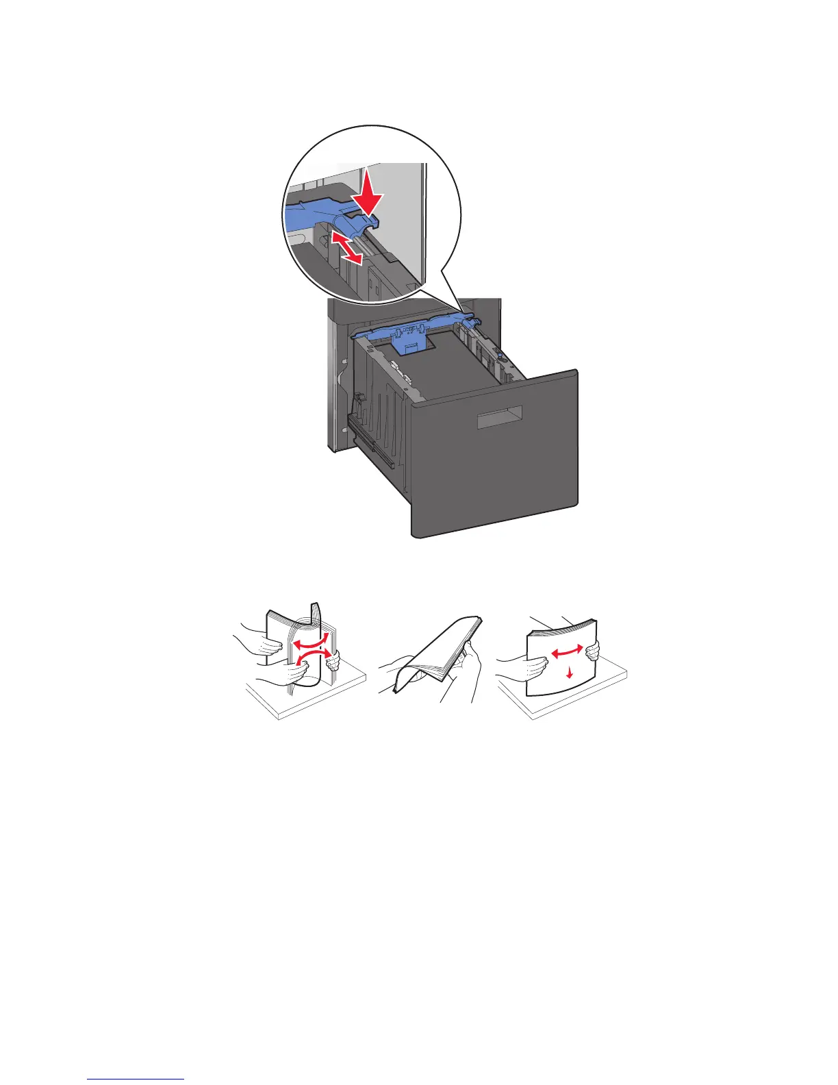5 Flex the sheets back and forth to loosen them, and then fan them. Do not fold or crease the paper. Straighten the