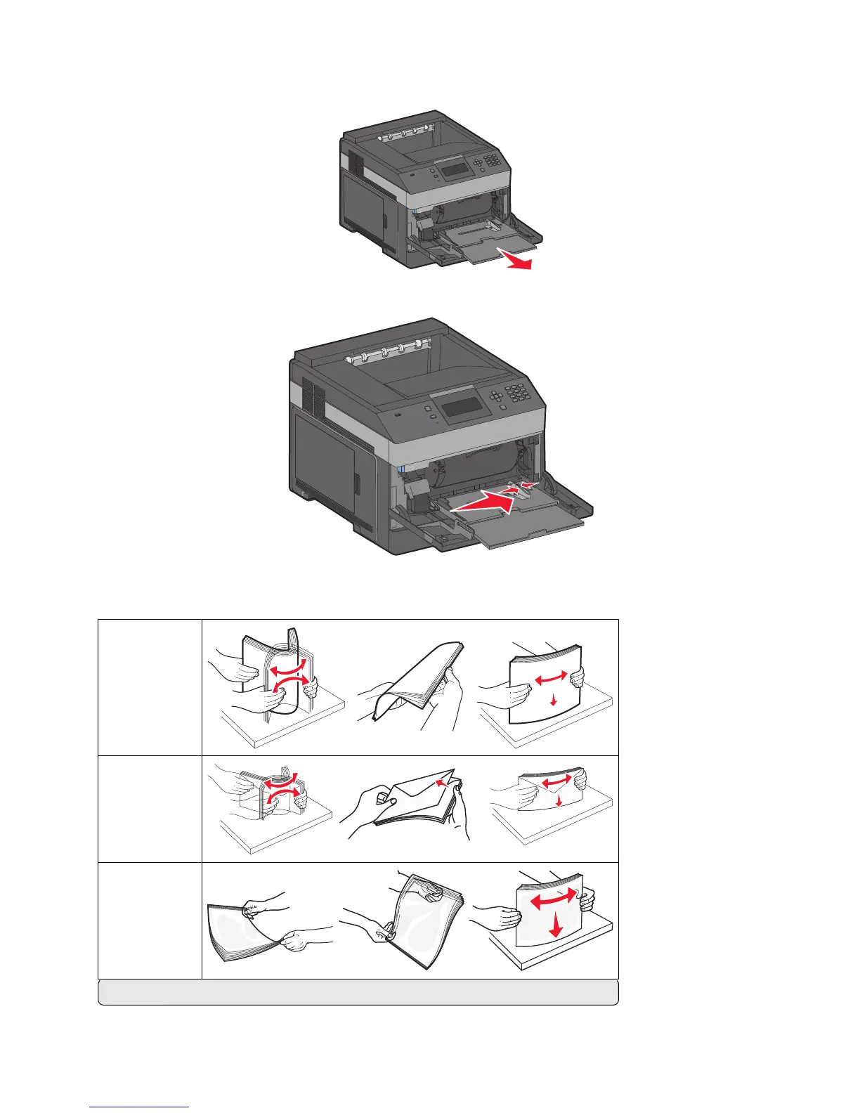 4 Flex the sheets of paper or specialty media back and forth to loosen them, and then fan them. Do not fold or