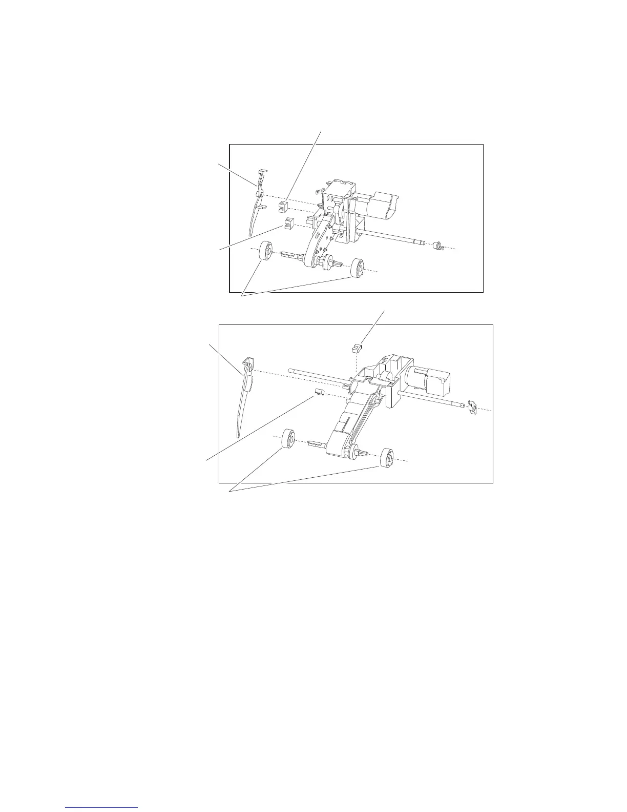driving force, from the pick arm drive motor on the pick arm assembly, is transmitted to the two pick rolls to feed