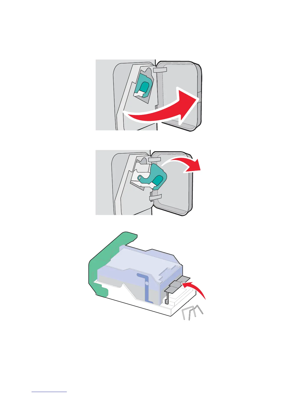 2. Pull the latch of the staple cartridge holder down, and then pull the holder out of the printer.