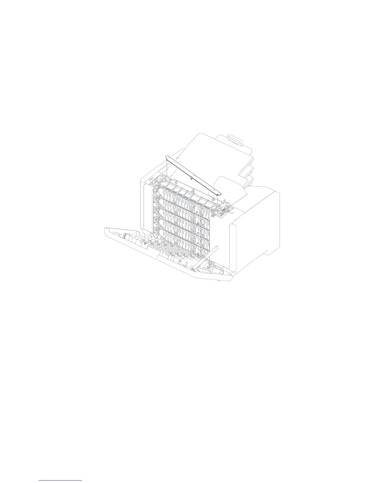 1. Remove the 5-bin mailbox right outer cover. Go to “5-bin mailbox right outer cover removal” on