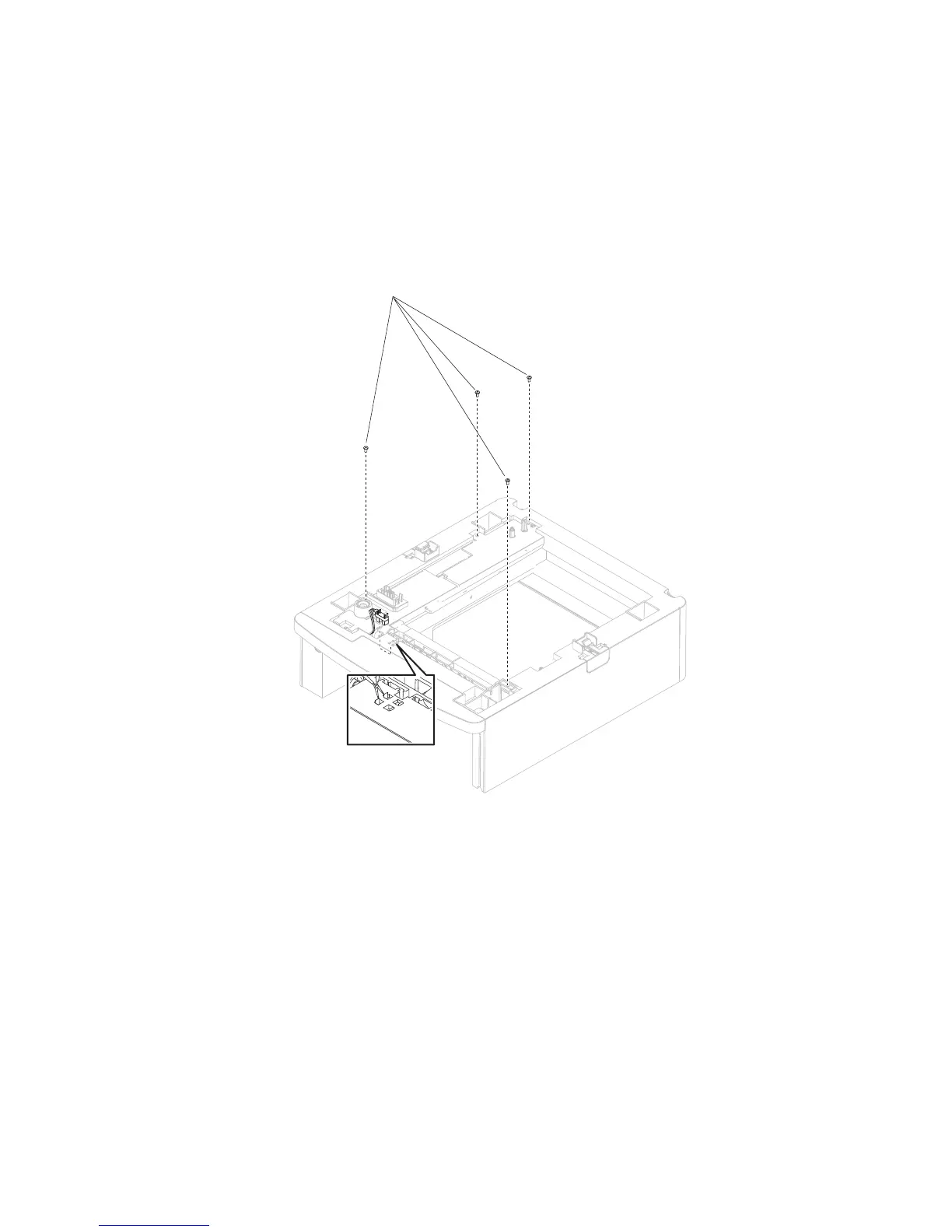 4. Remove the four screws (A) securing the 550-sheet frame assembly to the drawer.