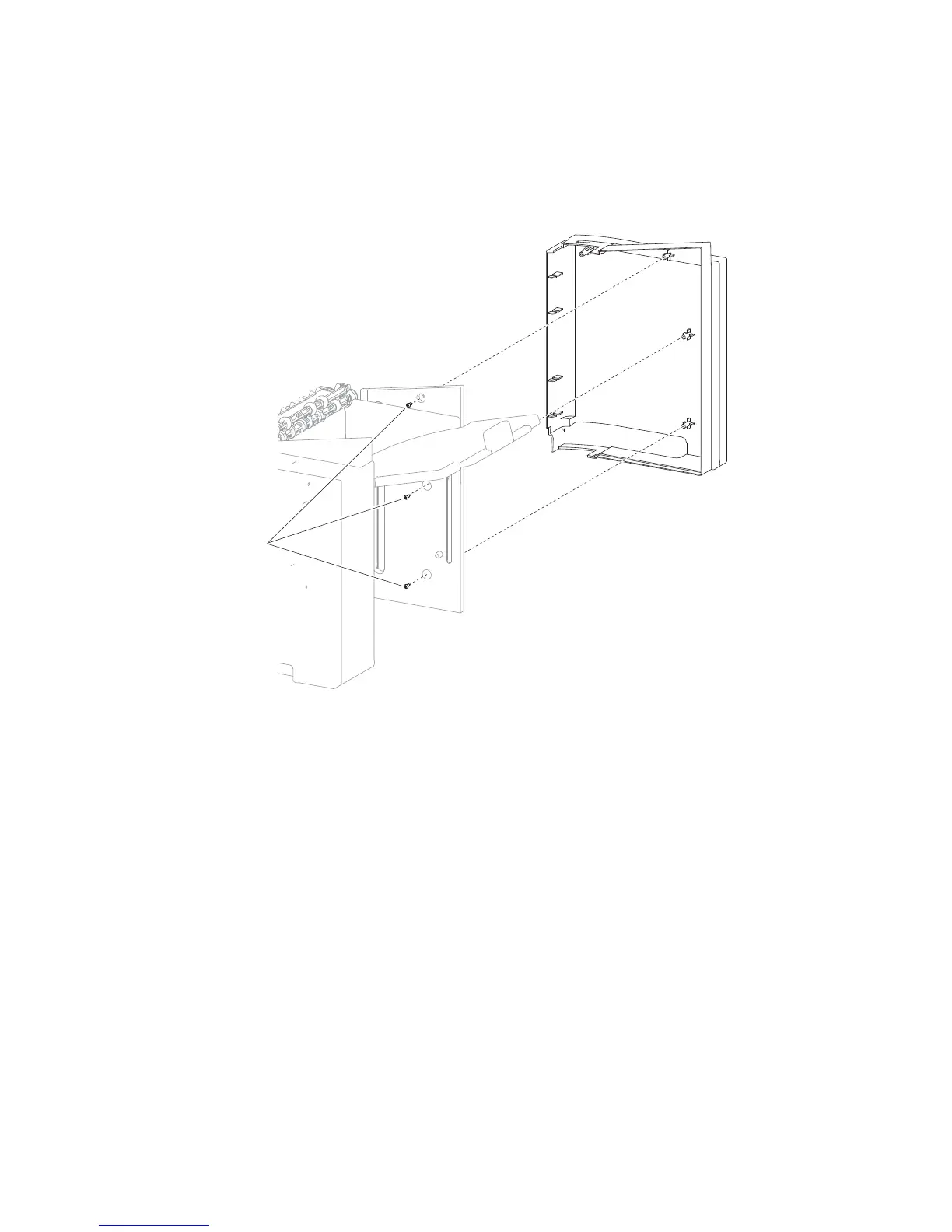 1. Remove the high capacity stacker rear door assembly. Go to “High capacity stacker rear door assembly