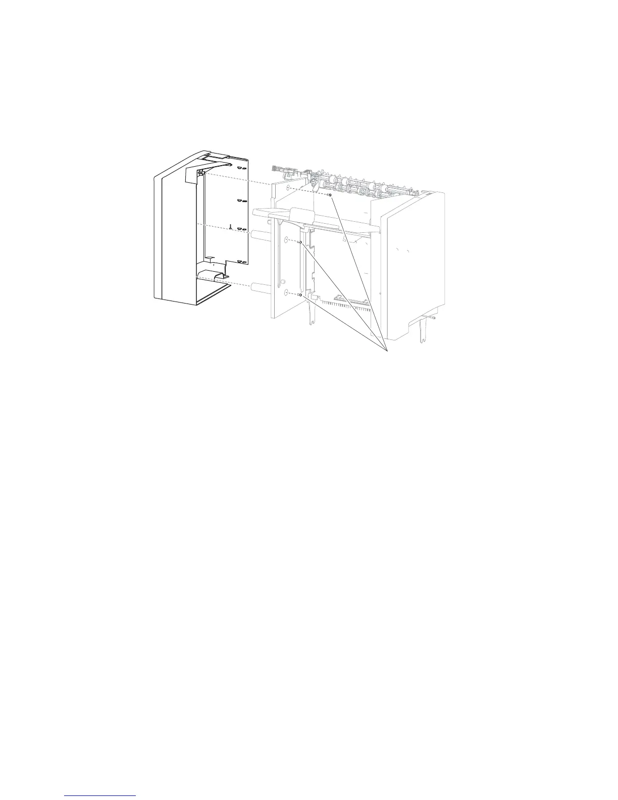 1. Remove the high capacity stacker rear door assembly. Go to “High capacity stacker rear door assembly