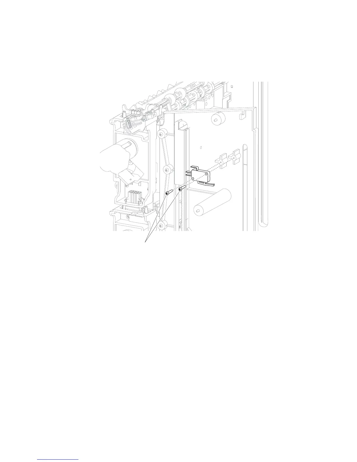 2. Remove the two screws (A) securing the high capacity stacker switch (media bin HP) to the left frame.