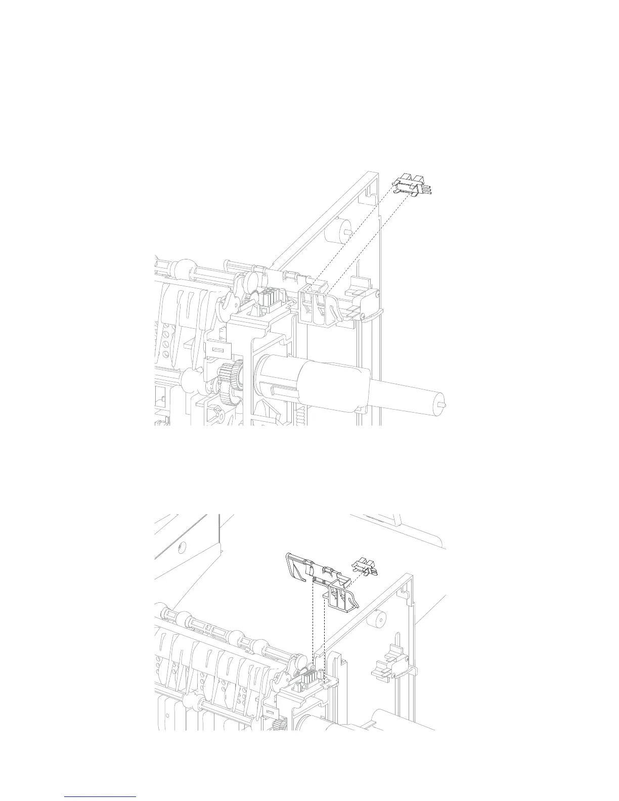 1. Remove the high capacity stacker left cover. Go to “High capacity stacker left cover removal” on