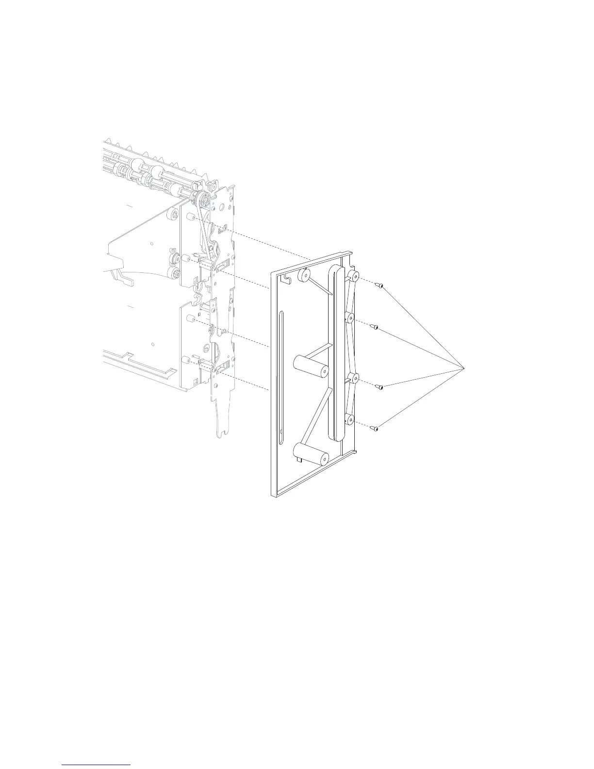 Note: When installing the right frame, make sure the media output bin assembly is aligned properly.
