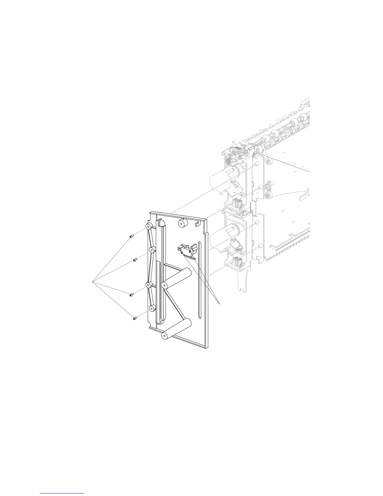 2. Remove the two screws (A) securing the switch (media bin HP) to the left frame.