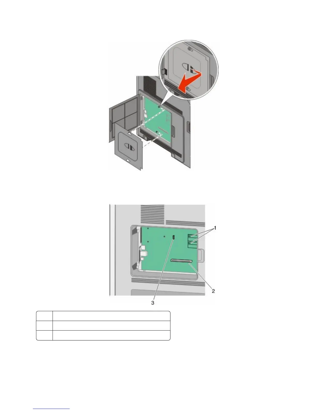 Touch something metal on the printer before touching any system board electronic components or connectors.