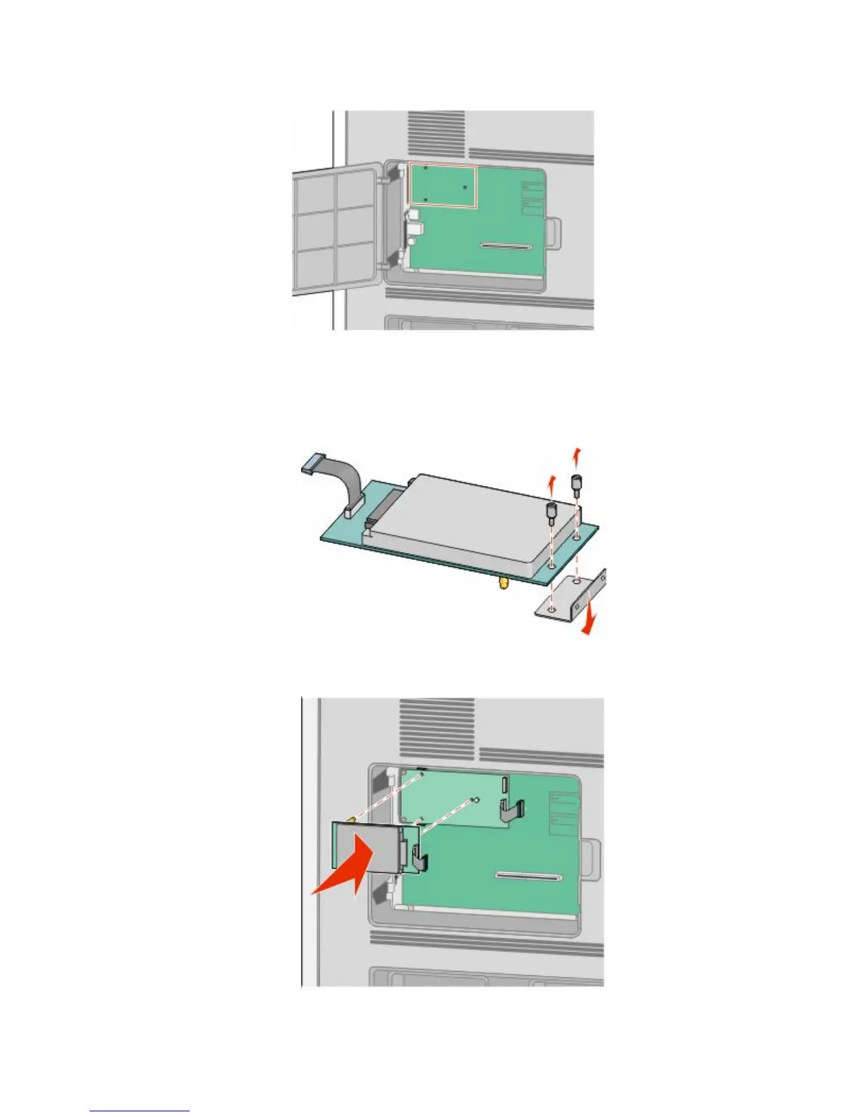 Note: If an optional ISP is currently installed, then the printer hard disk must be installed onto the ISP.