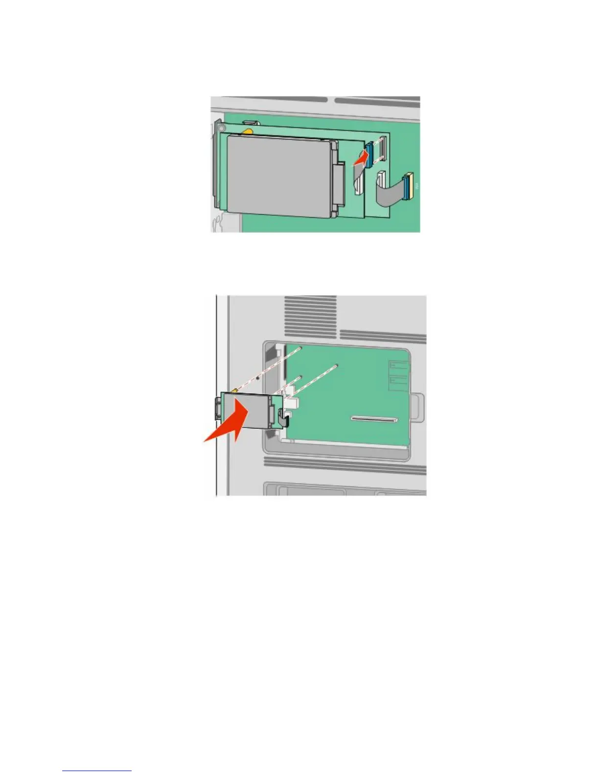 a Align the standoffs of the printer hard disk with the holes in the system board, and then press downward on