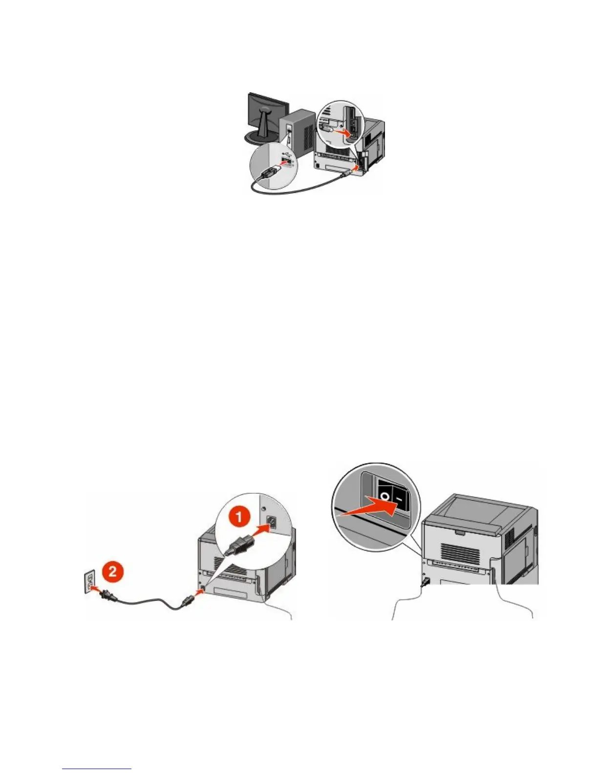 2 Connect the power cable to the printer and then to a properly grounded electrical outlet, and then turn the power