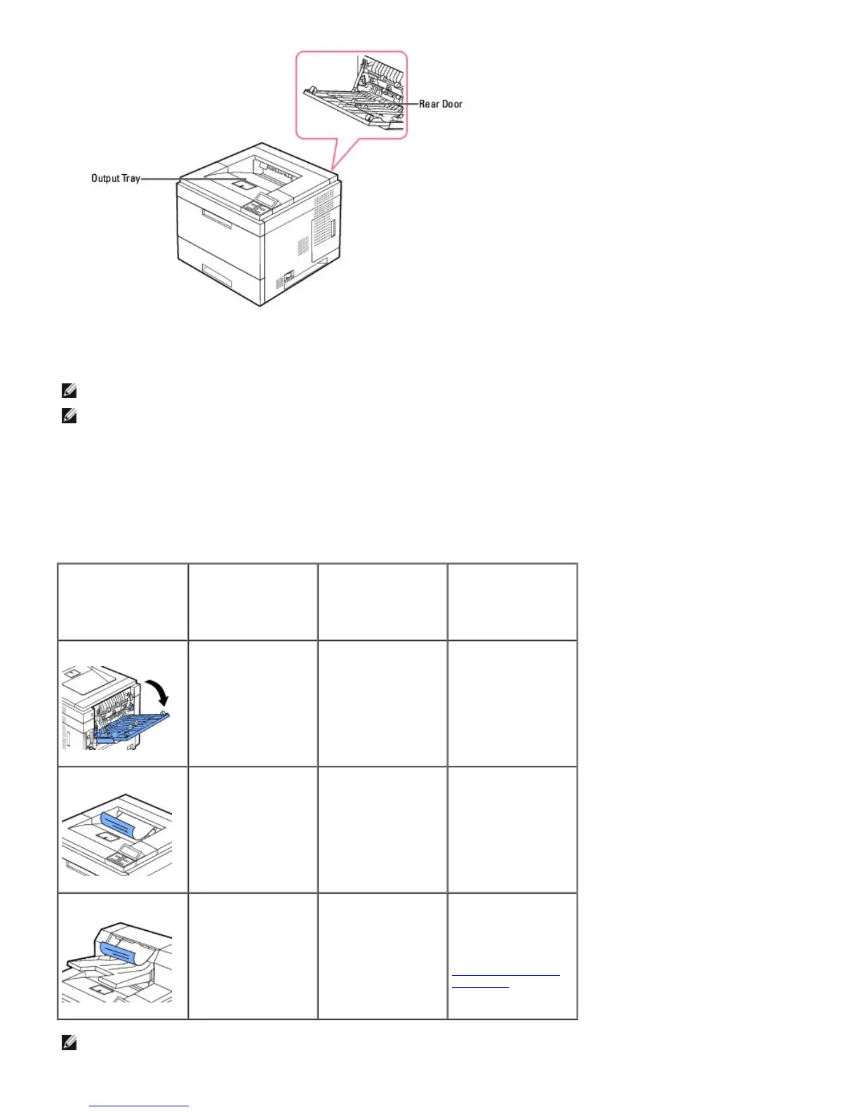To use the output tray, ensure that the rear door is closed. To use the rear door, open it.